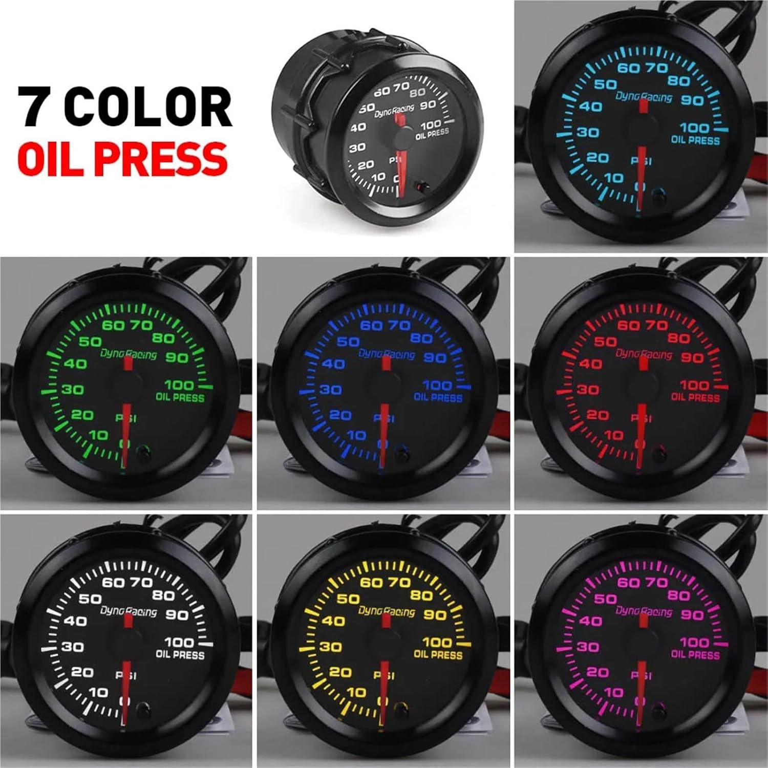 Oil Temperature GaugesProduct Description:Item name:Oil pressure gauge(0-100PSI)Diameter:2"/52mmCurrent:IGN MAX 0.3A ILM 0.3APower:DC(10-15V) 12V ProfessionalFeature :1.High speed Steppermotor with a quick response !!2.Comes with installation manual.3.Clear and bright LED Display with 7 colors4.The button on the lens can switch the color of light you want.Fitment :Universal for all 12V CarsNote:1.The gauge wire some time will be diifferent color as installation show,Hop you could understand!2.We provide clear pictures ,measurement where possible.Please check as much as possible to make sure the item the one that you need.3.The actual item maybe has slight color distinct with listing image due to different computer screens ,thanks for your understanding.4.The size of item is manual measurement,please allow 2mm difference.5.(IMPORTANT) No Instructions Included.Professional Installation Is Highly Recommended!How to install:Package include:1xhigh speed oil press gauge1xOil press sensor(Thread size:1/8NPT)1xCabling1xEnglish Installation Manual1xRetail DynoracingBox==========Other Part Number : Oil Press SensorPlacement on Vehicle : FRONT Part Number : BX101491Interchange Part Number : Oil Pressure SensorSpecial Features : Oil Pressure GaugeItem Weight : 0.3KGItem Height : 52MMItem Width : 52MMItem Length : 52MMMaterial : ABS+METALItem name : Oil Pressure Gauge(0-100PSI)Fitment : Universal fro all 12V CARCurrent : IGN MAX 0.3A ILM 0.3APower : DC(10-15V) 12V ProfessionalColor : Clear and bright LED Display with 7 colorsSensor size : NPT1/8