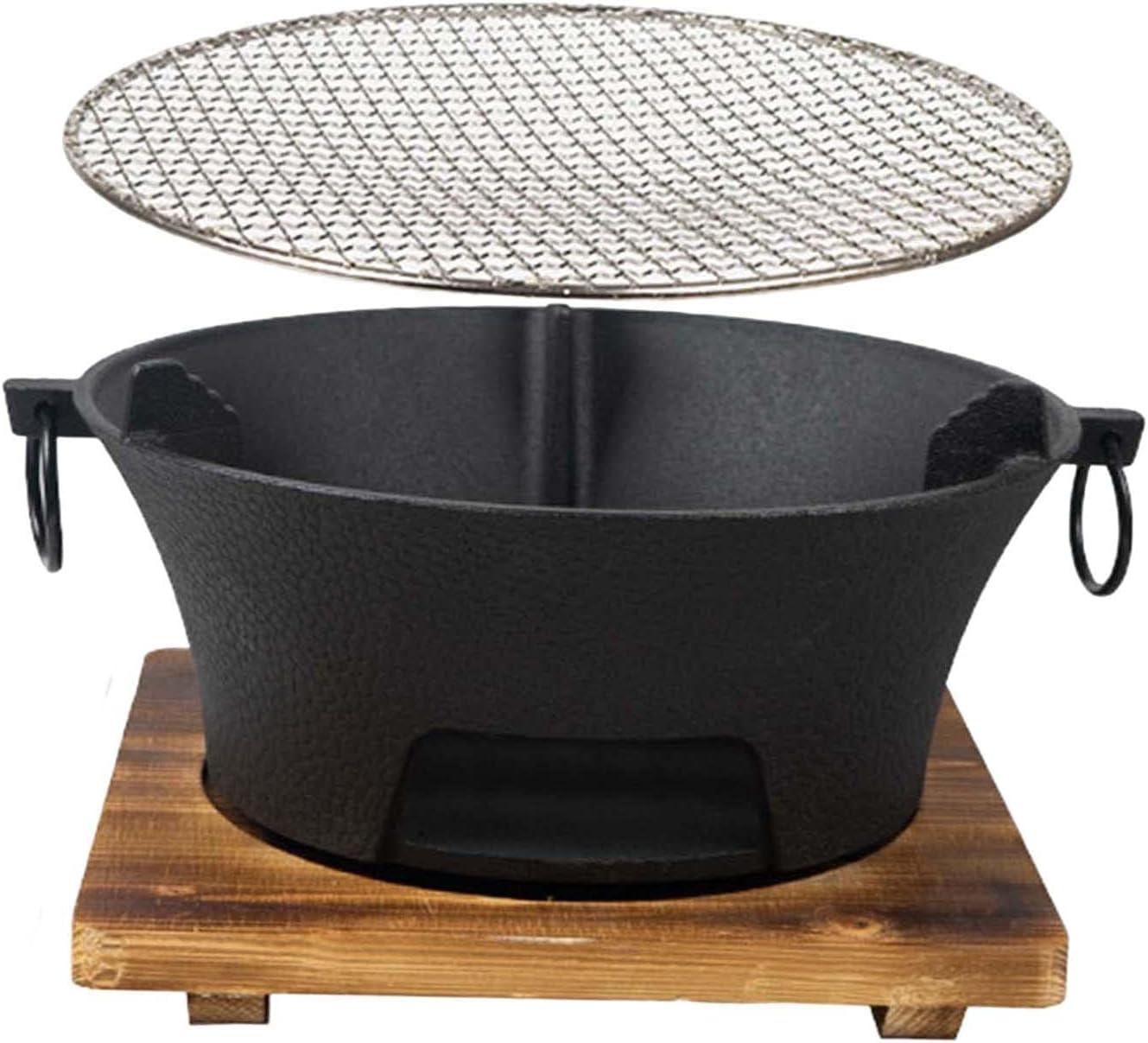 Description: - Outdoor Charcoal Grill: The camping grill stove can be used as a campfire grill. Can be for outdoor leisure barbecues and home use. - Barbecue Stove: Our Charcoal Stove with a wooden base stand, non slip, sturdy, not easy to move, stable structure, and easy to clean. - Portable Design: Compact grill convenient for storage and carrying. Holes can provide efficient heat collection to help effectively. - Material: The BBQ camping furnace is made of cast iron, and grill net is made of stainless steel. It is heat resistant, and scratch resistant, and it is not easy to be deformed to ensure long term use. - Widely Used: The charcoal grill with wire mesh is suitable for camping, picnic, beach, backyard, garden, trekking, barbecue, fishing, etc. Perfect for roasting chicken, steak, fish, or vegetables.Specification: - Material: Cast Iron, Stainless SteelSize Chart:S: Charcoal Stove Mouth Diameter:19.5cm/7.68inch; Charcoal Stove Bottom Diameter: 12.8cm/5.04inch; Charcoal Stove Height: 10cm/3.94inch; Base Size:17.5cm/6.89inch; Suitable for 1-2 people to use.M: Charcoal Stove Mouth Diameter:25cm/9.84inch; Charcoal Stove Bottom Diameter: 18.5cm/7.28inch; Charcoal Stove Height: 12cm/4.72inch; Base Size:23.5cm/9.25inch; Suitable for 3-4 people to use.L: Charcoal Stove Mouth Diameter:28cm/11.02inch; Charcoal Stove Bottom Diameter: 20.5cm/8.07inch; Charcoal Stove Height: 12cm/4.72inch; Base Size:25.5cm/10.04inch; Suitable for 5-6 people to use.Package Includes:1 Grill Stove1 Wooden Stove Holder1 Grill MeshNote:Please allow slightly errors due to manual measurement and different monitors.
