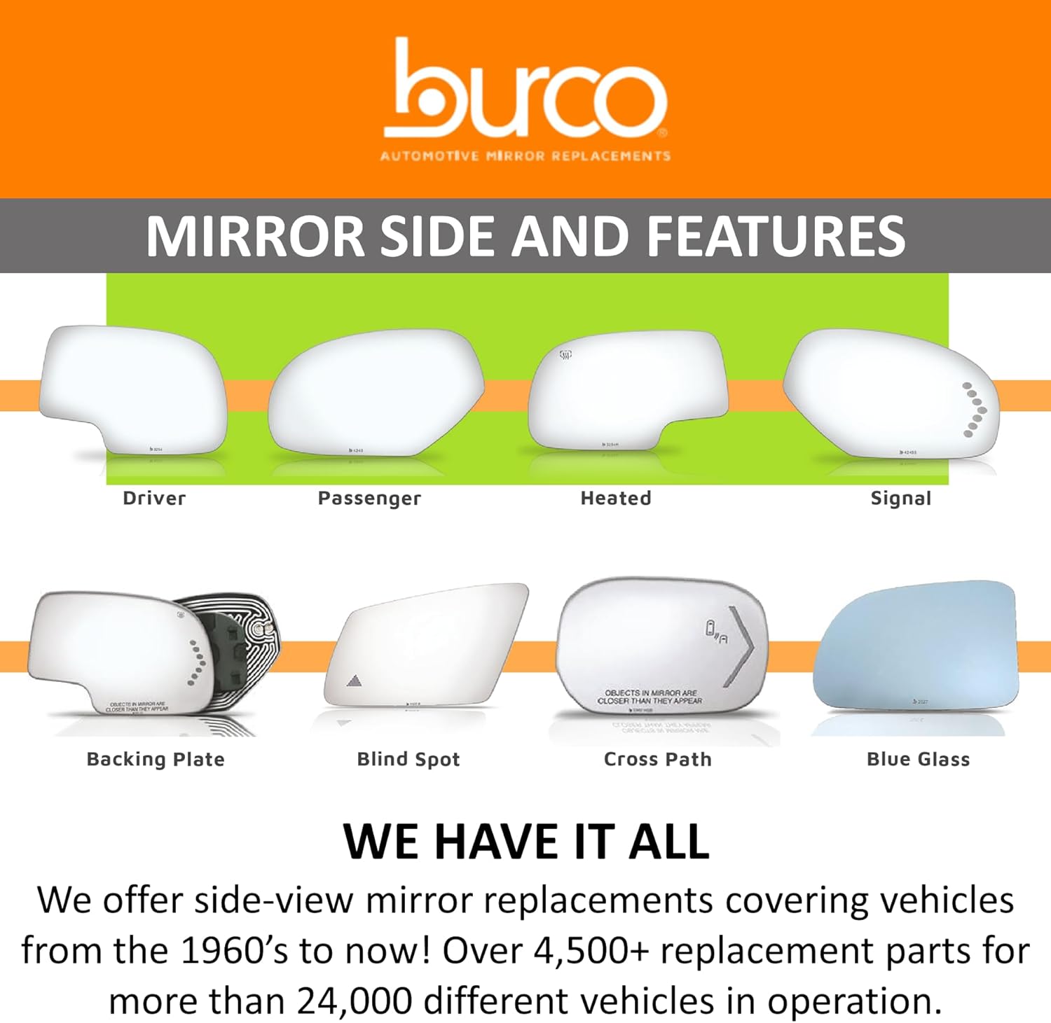 | Manufacturer Warranty Description | Break-Free Guarantee only when your Burco mirror replacement is professionally installed by a Burco Certified Installer |
