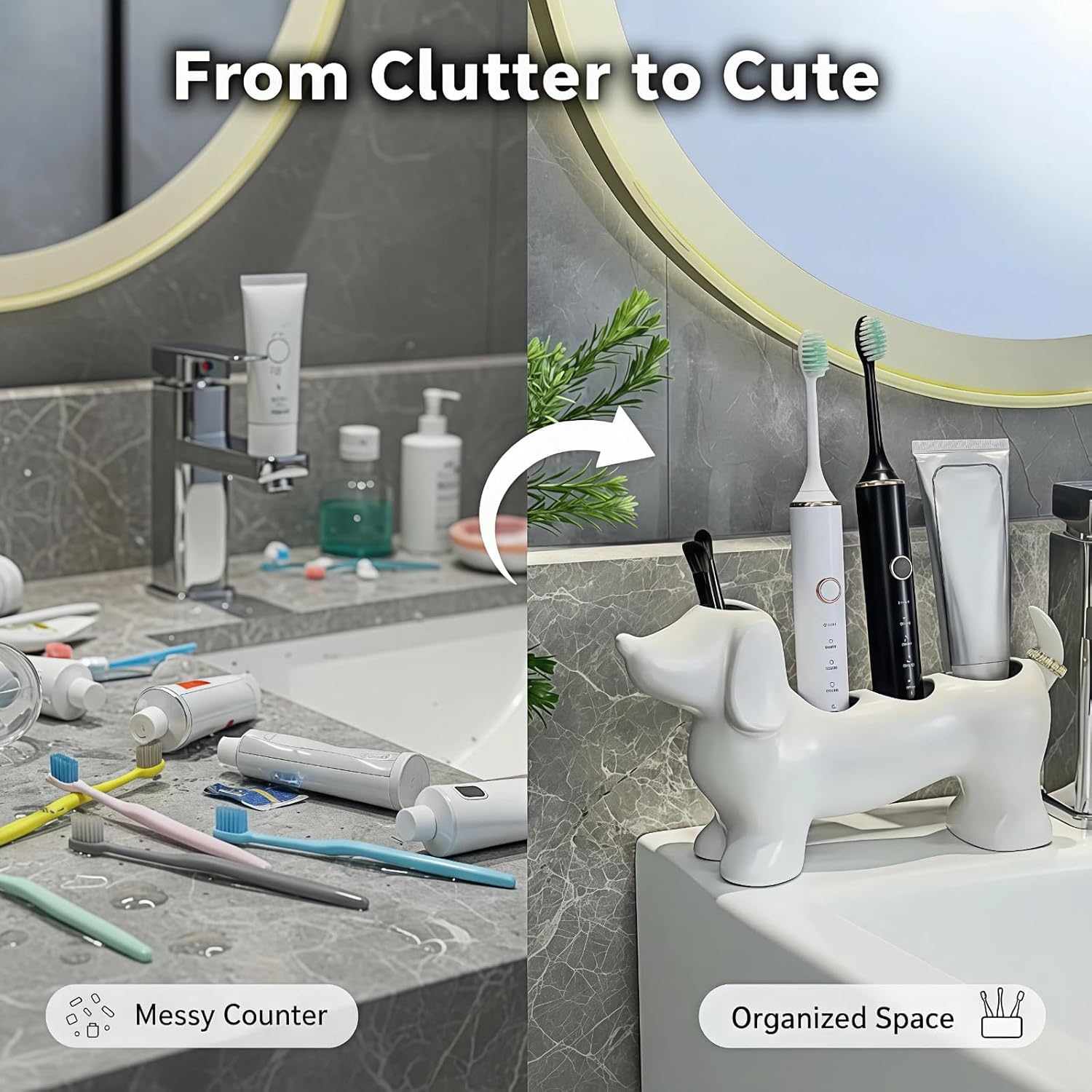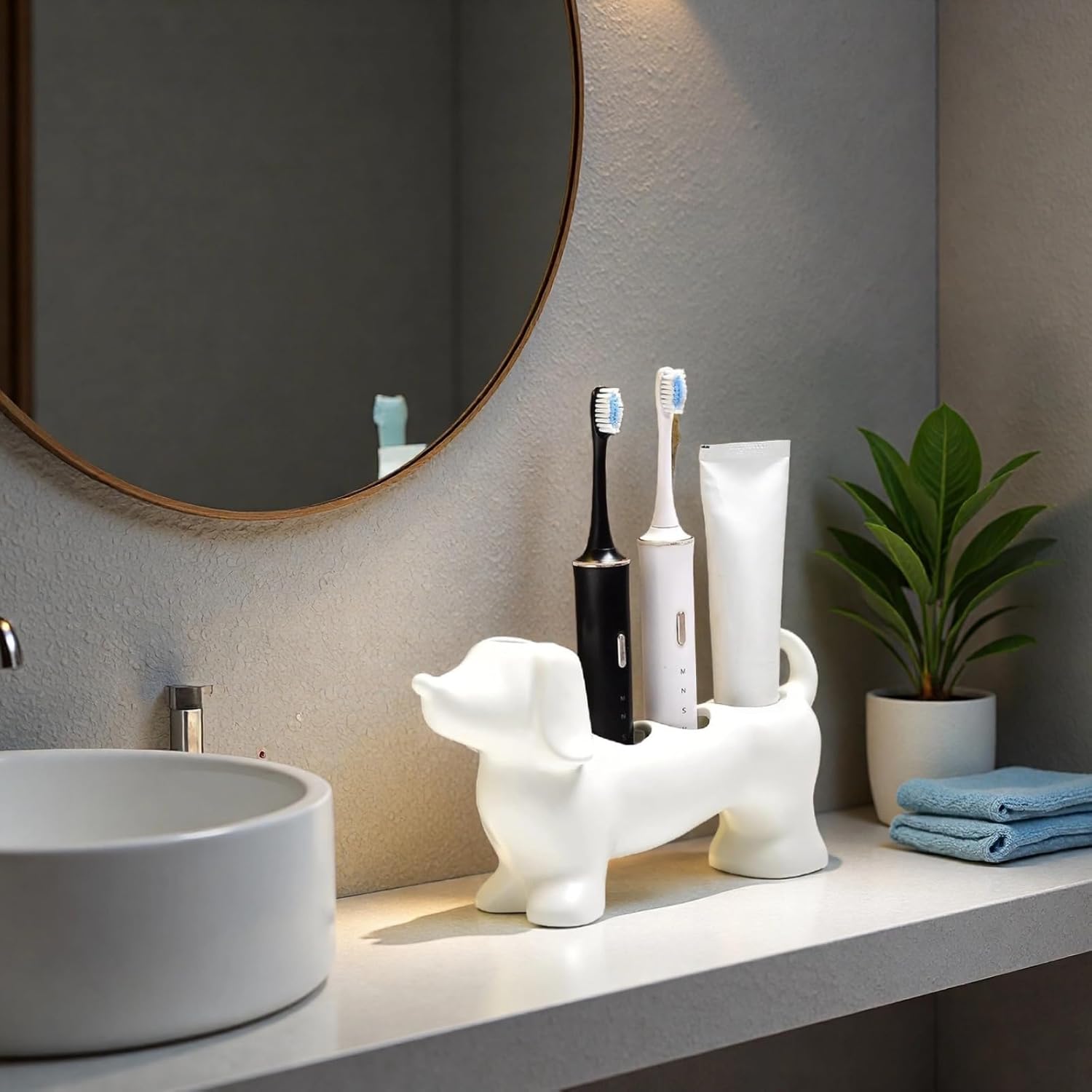 This charming Dachshund Toothbrush Holder, meticulously crafted from high-quality glazed ceramic, combines whimsical design with everyday functionality. Featuring an adorable and recognizable dachshund silhouette, it adds a touch of lighthearted fun to your bathroom sink area while celebrating your love for pets. Beyond its charming appeal, the holder is built to last with a sturdy, moisture-resistant construction that ensures your toothbrushes are held securely. The non-porous surface makes cleaning effortless, and its versatile design allows it to serve as a stylish decor accent on a vanity desk, in a clubhouse, or as a fun organizer in a child's room. Measuring 11.02"L x 3.15"W x 5.12"H, it not only keeps your essentials tidy and within easy reach but also makes for a thoughtful gift for animal enthusiasts, perfect for housewarmings or birthdays. Simplify your daily routine and inject personality into your space with this cheerful and functional piece that turns a mundane task into a small moment of joy.