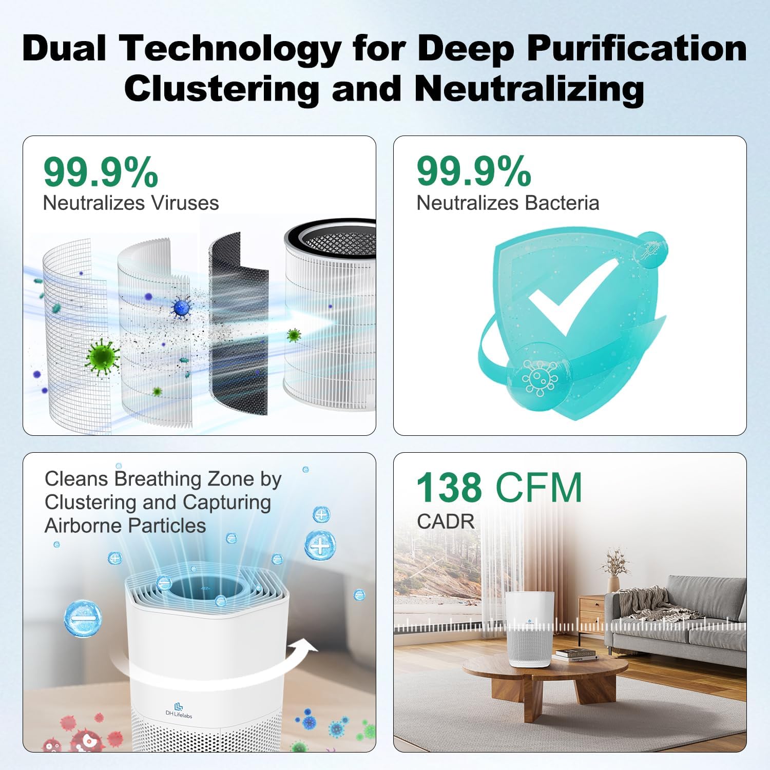 | Included Components | 1 x Air Purifier, 1 x H13 HEPA Filter, 1 x Quick Start Guide |