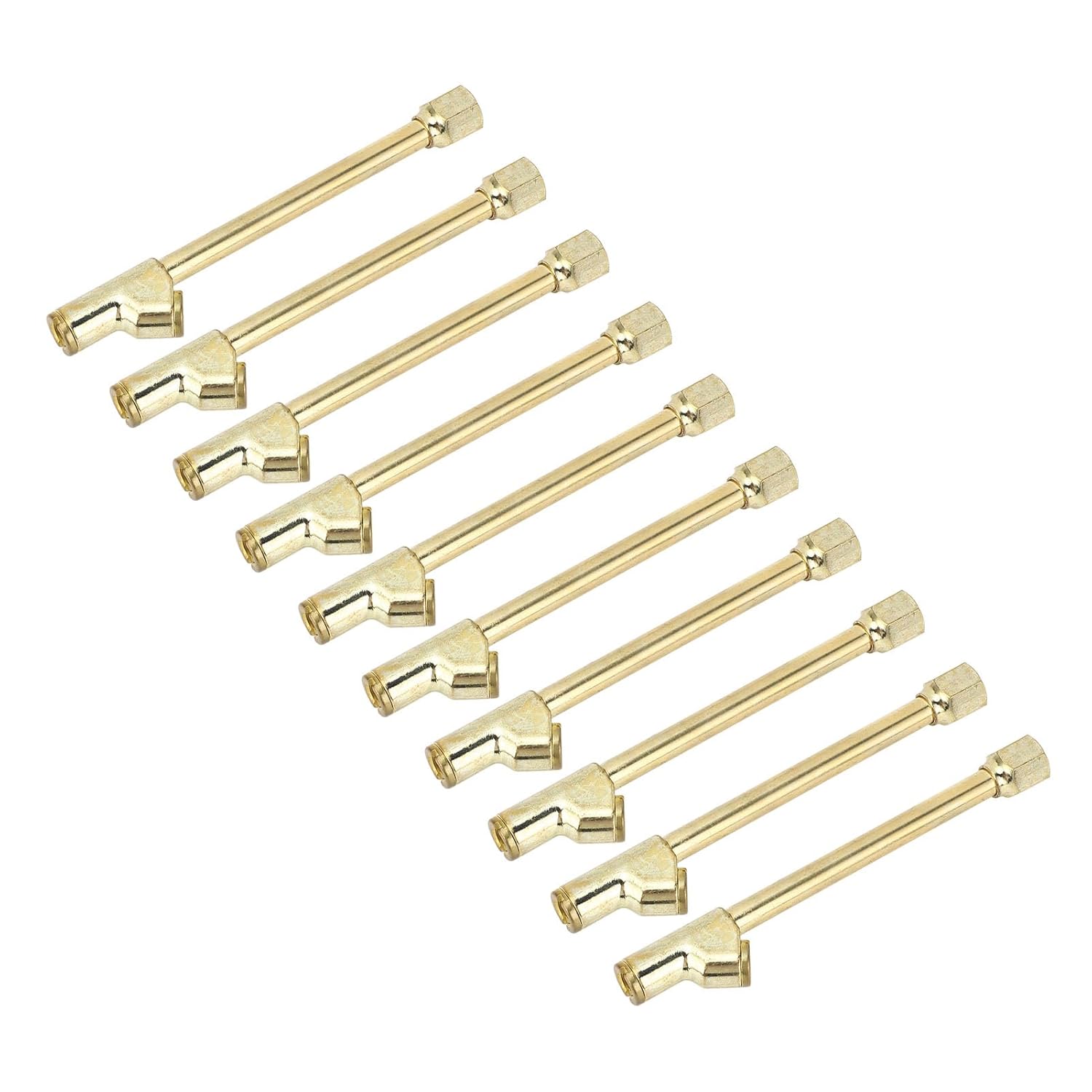 1. Head Air Chuck: This head pneumatic chuck features 30° and upright angles, making it easier to inflate tires at various positions using a tire inflating rod for enhanced convenience. 2. Easy Access Inflation: The head tire air chuck allows effortless inflation of tires in tight and hard to arrive spaces, with a convenient 6.3 inch overall length for versatile use. 3. Metal Structure: Constructed with premium zinc alloy hex heads and iron body, this tire inflate chuck uses brass plating technology to enhance durability and reliability for long lasting performance. 4. Closed Flowing System: Our closed flowing air chuck enables air flowing when connected to the valve coring while cutting off air flowing when disconnected, ensuring efficient tire inflation retention. 5. Versatile Application: Suitable not just for cars but also for motorcycles, cycles, electric scooters, hoverboards, and other small vehicles, this tire air chuck is a compact choice for home and travel use. Specification: Item Type: Head Air Chuck Material: Iron, Zinc Alloy, Brass Thread Size: 1/4in FNPT Length: Approx. 15.9cm / 6.3in How to Use: Take out the product and install it, then it can be used PackageList: 10 x Double Head Air Chuck 10 x Quick Connect Plug 1 x Water Proof Tape
