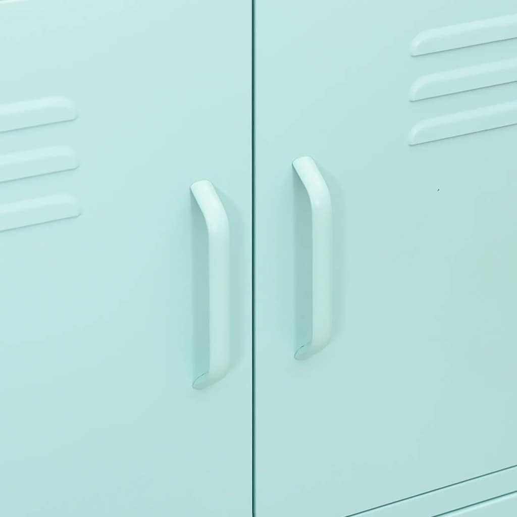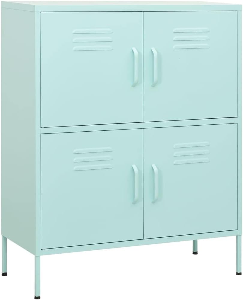 This Mint Green Steel Storage Cabinet is a fantastic mix of modern design and handy functionality, making it perfect for your living room, hallway, or office. Standing at 40.0 in tall and featuring a lovely mint shade, it not only spruces up your decor but also gives you plenty of space for all your essentials, multimedia gear, or even books. It's a great answer to clutter!You can adjust the shelves to fit various items, so it’s really versatile.Made from quality powder-coated steel, it’s tough, looks sleek, and is easy to keep clean.Its minimalist vibe matches modern decor perfectly, enhancing any room's style.With compact dimensions of 31.5 x 13.8 x 40.0 in, it slides into smaller spaces but still delivers on storage.Levelers stabilize it on uneven floors, keeping it steady while that mint finish adds a nice touch. Shape: RectangularMaterial: Metal SteelFinish: Powder-CoatedIndoor/Outdoor: Indoor OnlyNumber of Doors: 4Cover Included: NoRoom: Living RoomMaximum Number of People: 1Dimensions: 13.8 x 31.5 x 40.0 in (W x L x H)Weight: 41.31 lbsLadder: NoDelivery Contains: Storage cabinetAssembly Required: YesRecommended Number of People for Assembly: 2