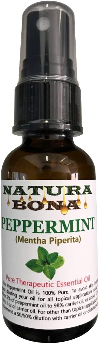 Natura Bona Peppermint Therapeutic Grade Essential OilBotanical Name: Mentha Piperita.Peppermint essential oil is great added to a carrier oil or lotion for massages and pedicures.CAUTION: Avoid contact with Skin and Eyes. DO NOT OVER-SPRAY; Only a small amount is needed. Do not ingest; For external use only. Keep away from the face of infants or children. Keep away from children and avoid during pregnancy.100% Pure Grade Peppermint Oil; Please dilute with carrier oil prior to use.