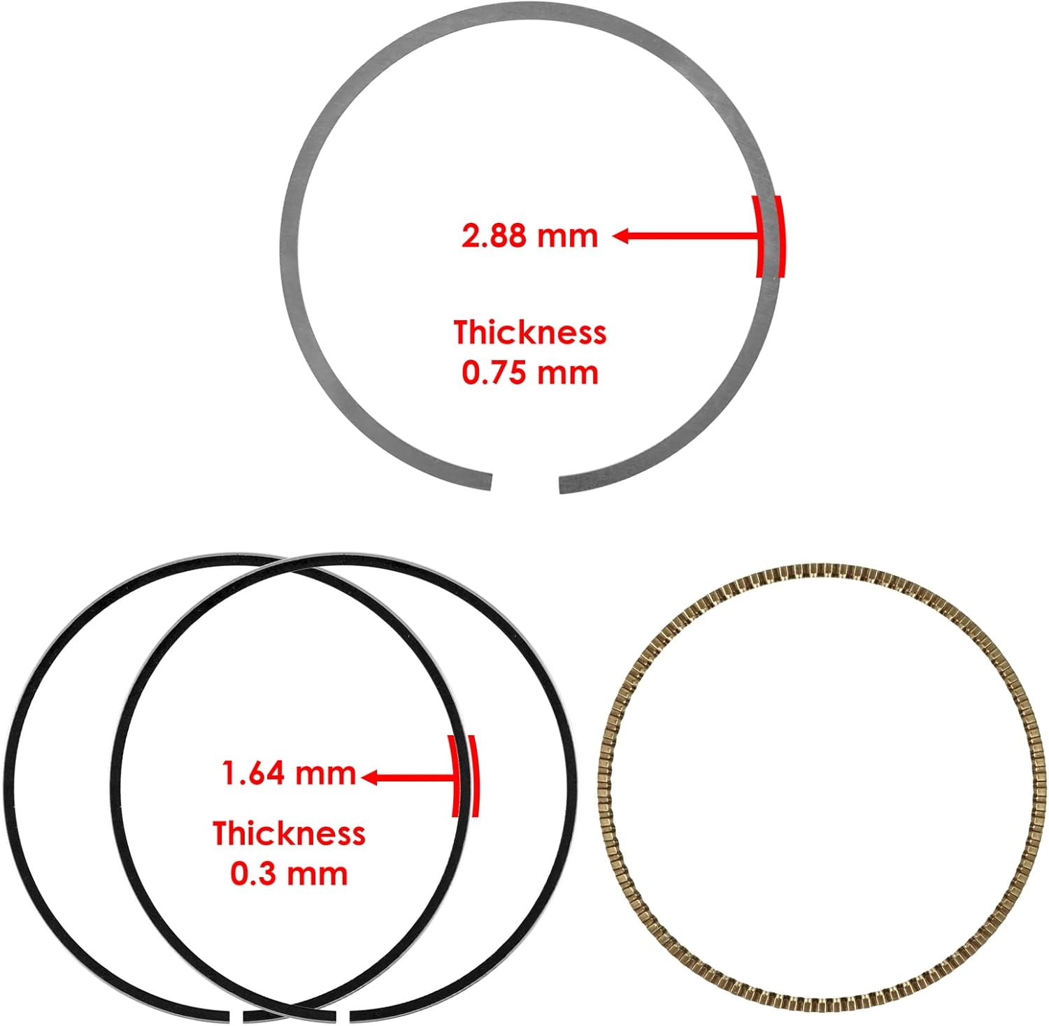 Piston Rings for Kawasaki KX250F/KX250F For Monster Energy 2004-2019 Piston Ring Set for Kawasaki Models KX250F 2004-2019 KX250F For Monster Energy 2009 Order Includes: 1 x Piston Ring Set ; 13008-0028 Thickness: 0.75 mm 0.3 mm Width: 2.88 mm ; 1.64 mm **