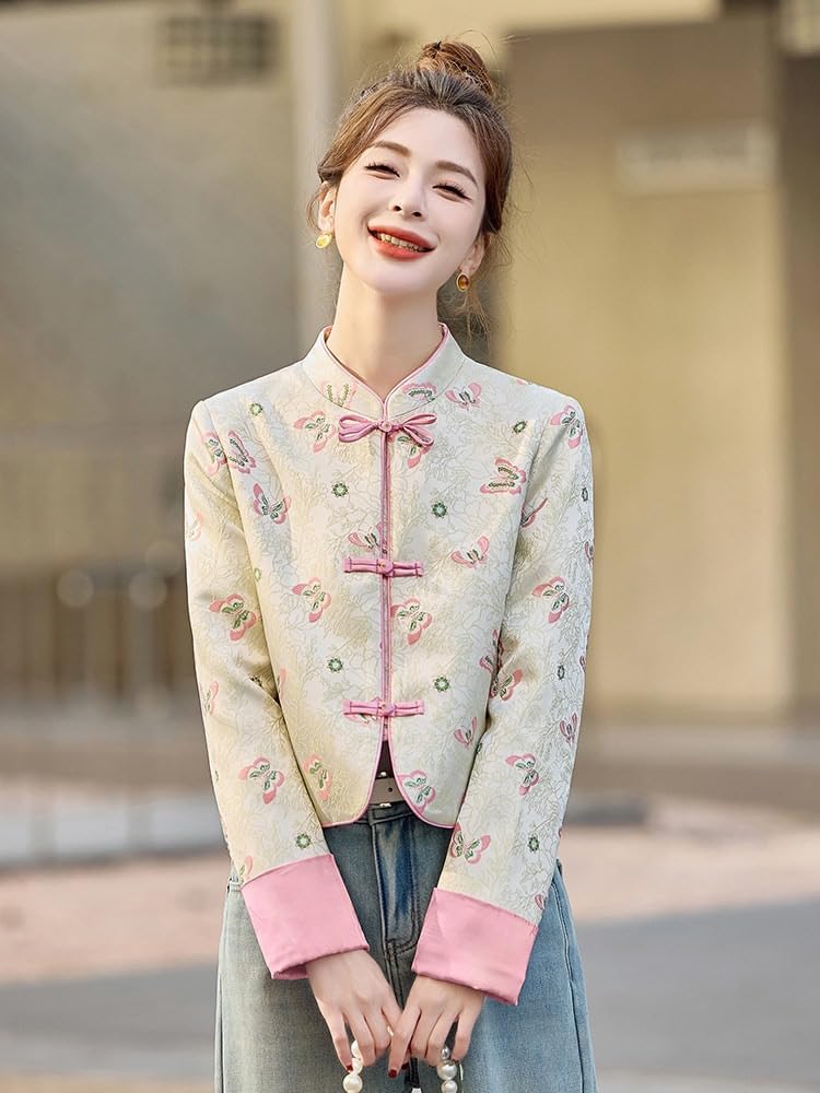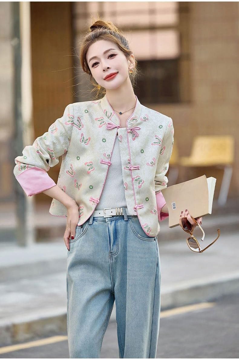 Style: Chinese-inspiredSeason: Spring, FallFit: CasualSleeve Design: RegularIntended for: WomenThickness: RegularLength: ShortSizes: S, M, L, XLphotography tea ceremony birthday party anniversary graduation mothers day valentines christmas holiday new years eve resort cruise hotel lobby city sightseeing campus library study coffee shop book club art gallery music concert theater opera ballet picnic beach coverup mountain retreat weekend getaway airport travel spring lightweight autumn cozy winter warm summer sheer long sleeve short sleeve quarter sleeve stand collar mandarin collar round neck v neck button front zip front open front cropped jacket mid length maxi satin silk cotton linen rayon velvet denim jacquard striped printed solid pastel dark bright metallic beaded lace sheer overlay tassel pom fringe adjustable belt patch pocket hidden pocket breathable soft comfortable