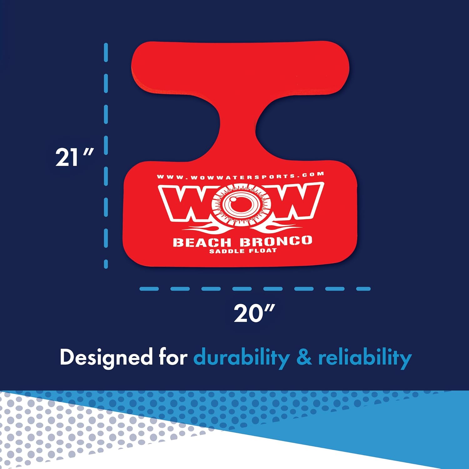 Sit on the WOW Sports Beach Bronco in blue for a relaxing experience in a pool, lake, or river. Make from extra thick foam, this soft pool seat keeps you afloat while offering comfort and security. You'll love that your arms and legs are free so you feel like you're swimming. Yet this pool seat does the work of holding you up, so you can truly enjoy the experience of being in the water. Designed for one person up to 220 pounds.